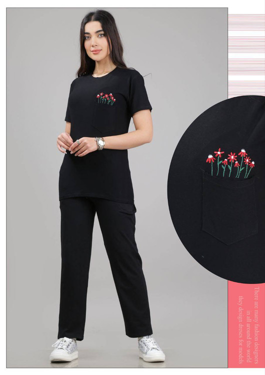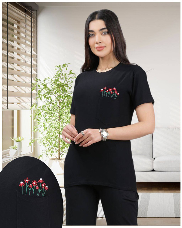 تیشرت مشکی تک جیب گلدوزی شده جنس ویسکوز